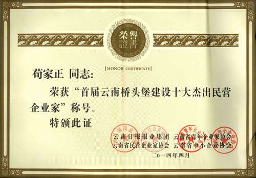 由云南省商務廳、云南省社科院指導,云南日報報業(yè)集團、云南省青年企業(yè)家協(xié)會、云南省民營企業(yè)家協(xié)會、云南省中小企業(yè)協(xié)會聯(lián)合組織開展的首屆“云南橋頭堡建設十大杰出民營企業(yè)家”宣傳評選活動,經(jīng)過各界推薦、公眾投票、評委會審定等程序,全省共有10名各行業(yè)的杰...