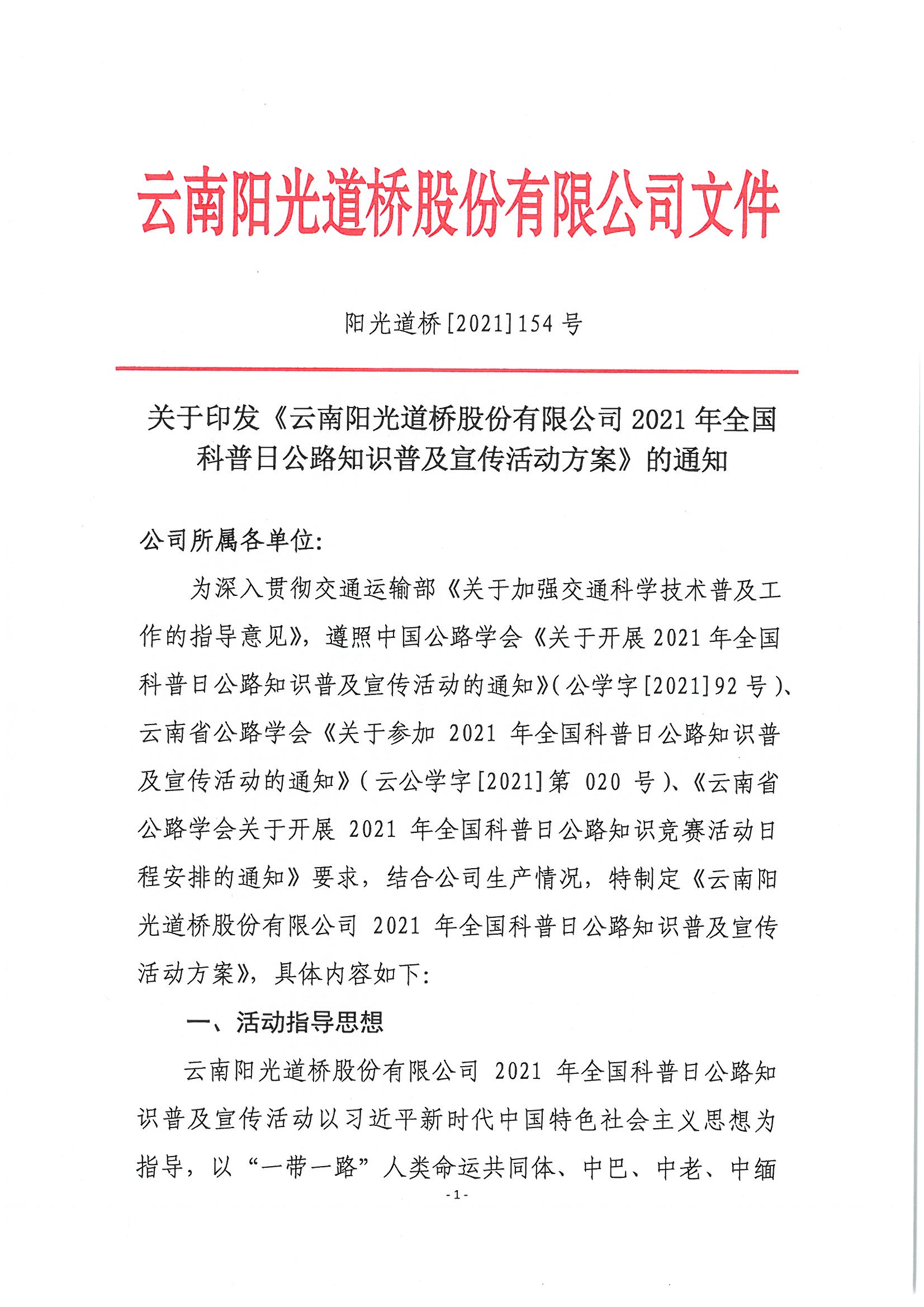 云南陽光道橋股份有限公司2021年全國科...